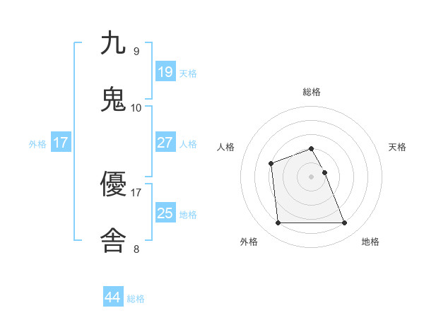 九鬼 優舎さんの外格は17画の4点!