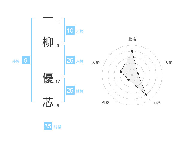 一柳 優芯さんの地格は25画の4点!
