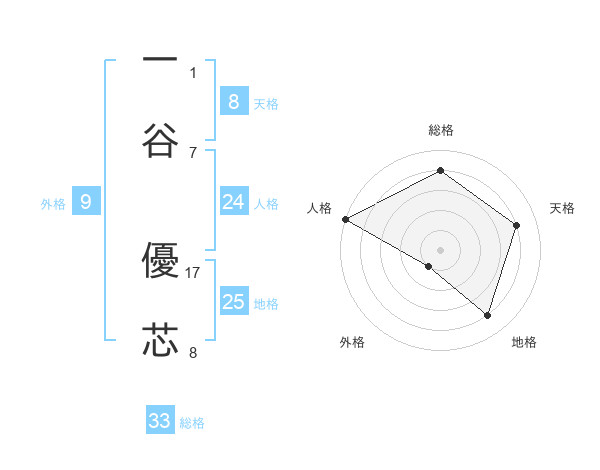一谷 優芯さんを姓名の画数から五運を鑑定