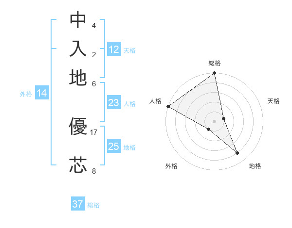 中入地 優芯さんの総格は37画の5点!