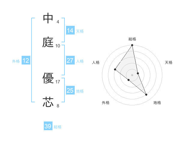 中庭 優芯さんを姓名の画数から五運を鑑定