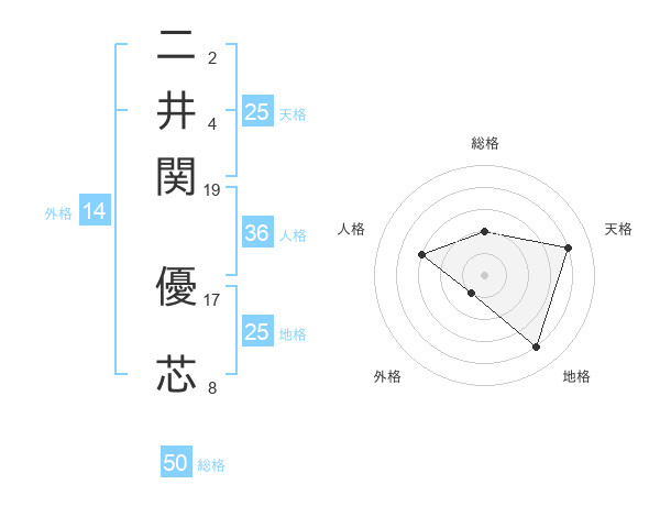 二井関 優芯さんの総格は50画の2点!