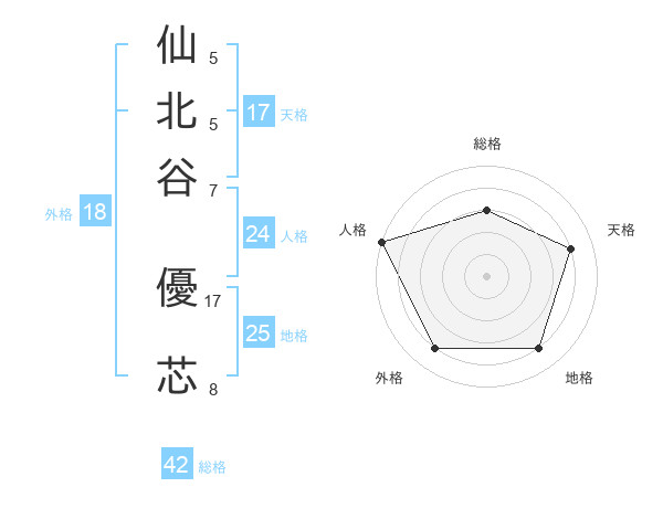 仙北谷 優芯さんを姓名の画数から五運を鑑定
