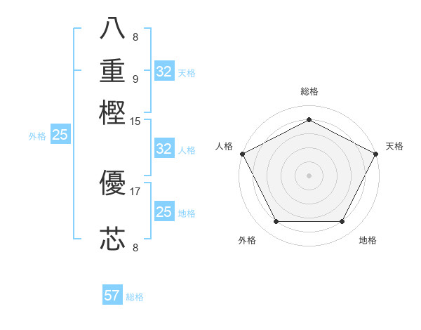 八重樫 優芯さんの総格は57画の4点!