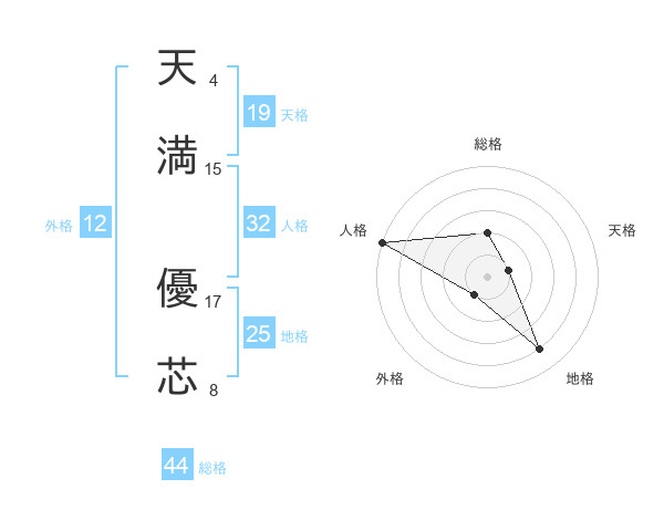 天満 優芯さんの総格は44画の2点!