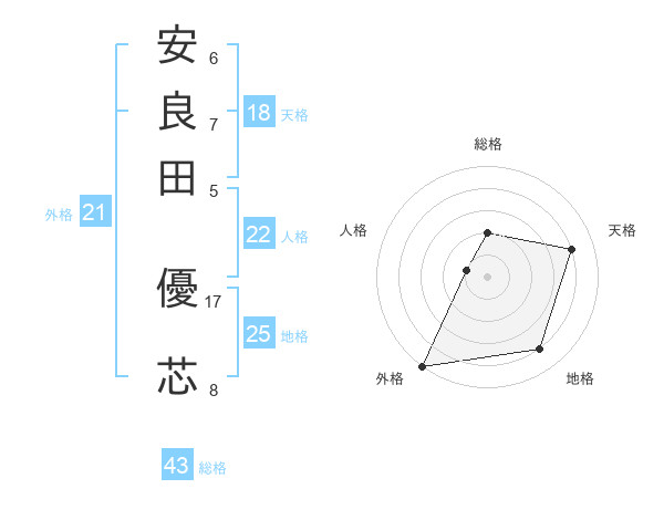 安良田 優芯さんの総格は43画の2点!