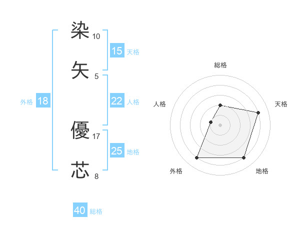 染矢 優芯さんを姓名の画数から五運を鑑定