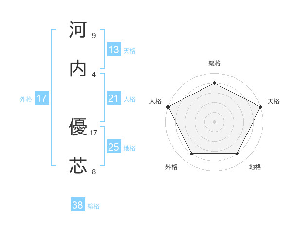 河内 優芯さんの総格は38画の4点!