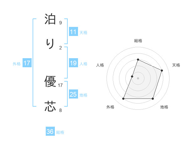 泊り 優芯さんの外格は17画の4点!