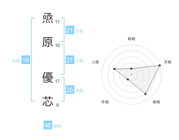 焏原 優芯さんの天格は21画の5点!