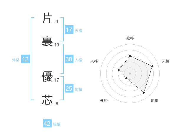 片裏 優芯さんを姓名の画数から五運を鑑定