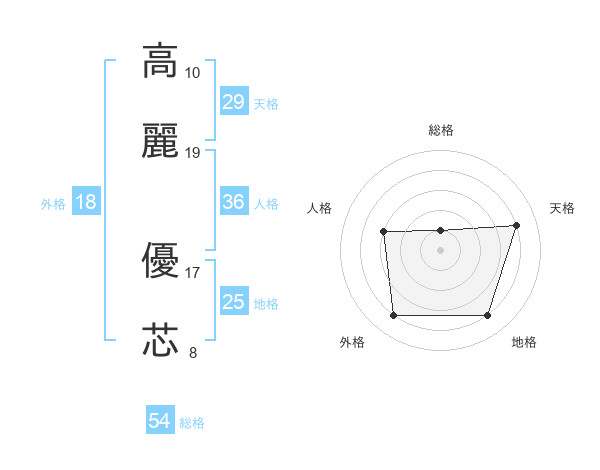 高麗 優芯さんの総格は54画の1点!