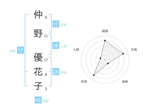仲野 優花子さんを姓名の画数から五運を鑑定