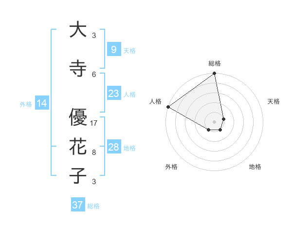 大寺 優花子さんを姓名の画数から五運を鑑定