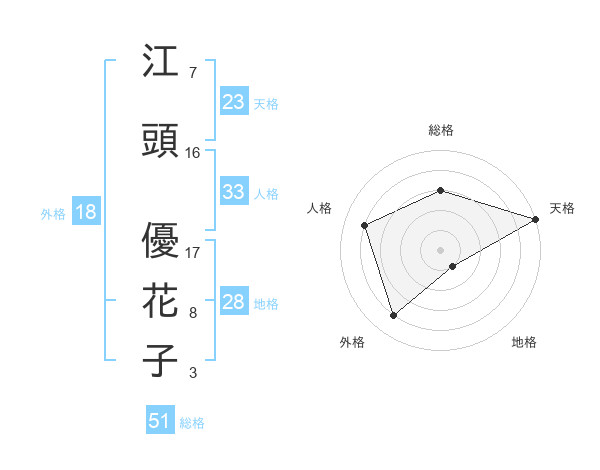 江頭 優花子さんを姓名の画数から五運を鑑定