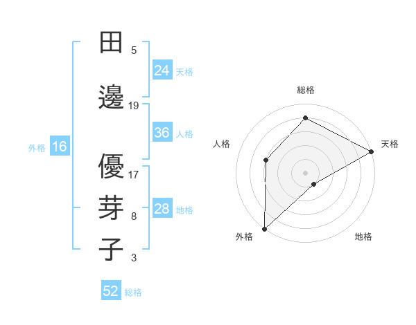 田邊 優芽子さんを姓名の画数から五運を鑑定