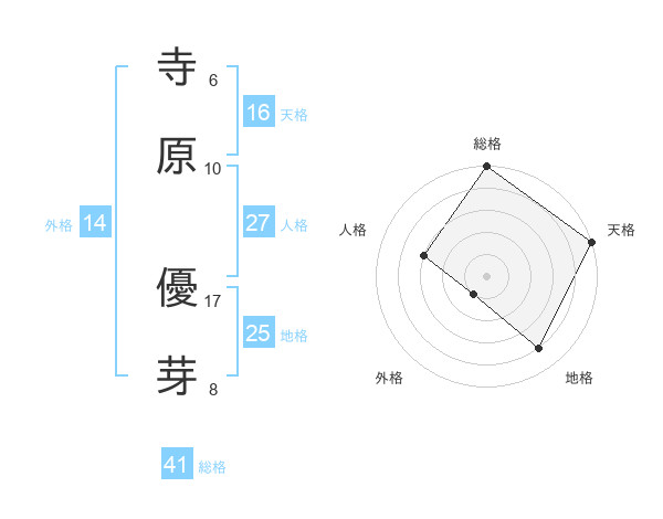 寺原 優芽さんの総格は41画の5点!