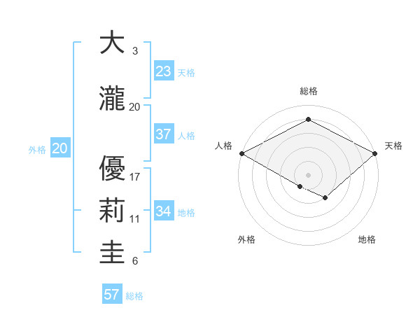 大瀧 優莉圭さんの天格は23画の5点