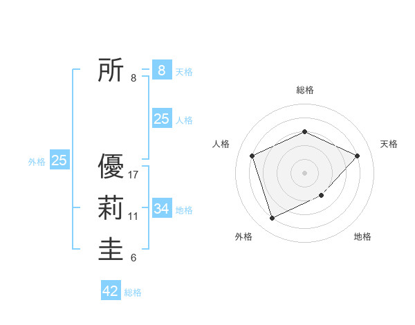 所 優莉圭さんの総格は42画の3点!