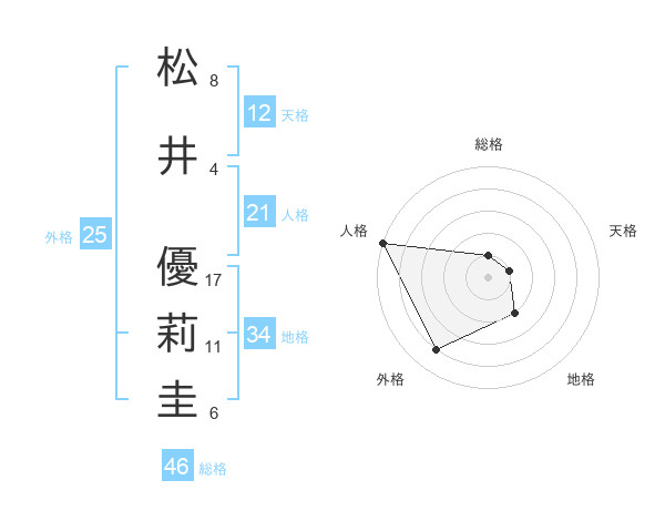 松井 優莉圭さんの地格は34画の2点