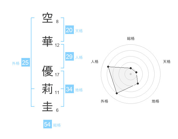 空華 優莉圭さんを姓名の画数から五運を鑑定