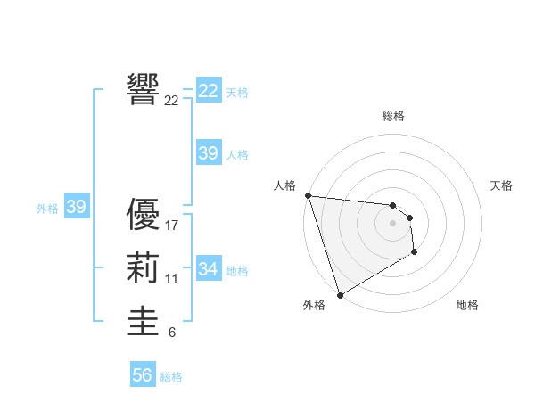 響 優莉圭さんを姓名の画数から五運を鑑定