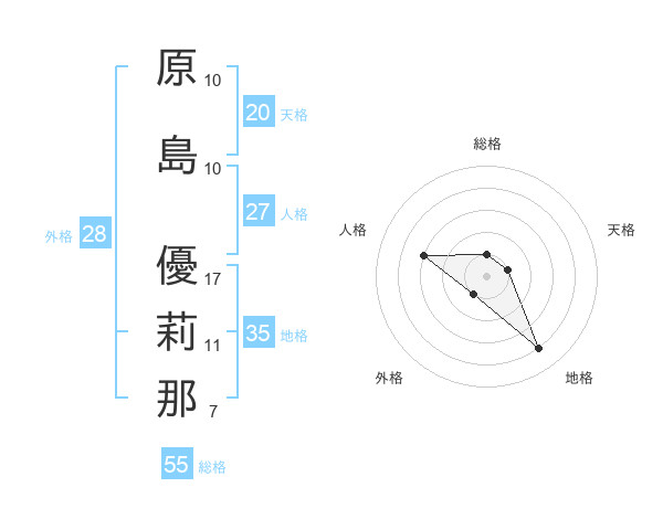 原島 優莉那さんを姓名の画数から五運を鑑定