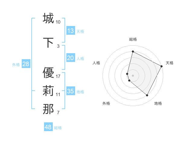 城下 優莉那さんを姓名の画数から五運を鑑定