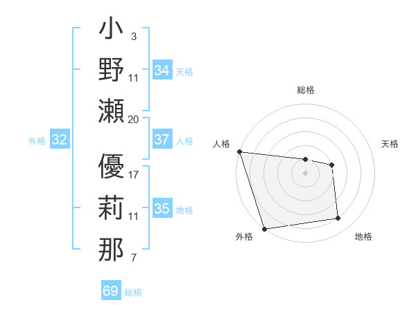 小野瀬 優莉那さんを姓名の画数から五運を鑑定