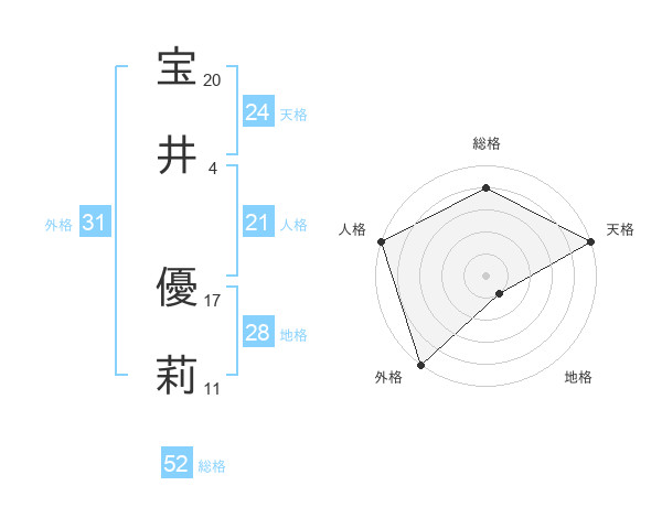 宝井 優莉さんの総格は52画の4点!