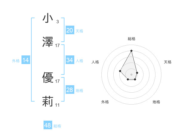 小澤 優莉さんの外格は14画の1点!