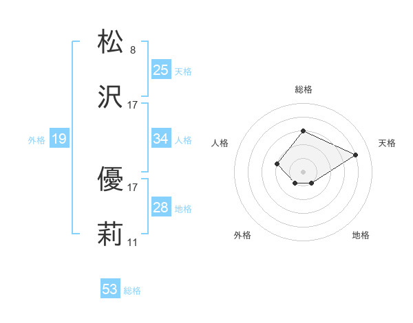 松沢 優莉さんの総格は53画の3点!