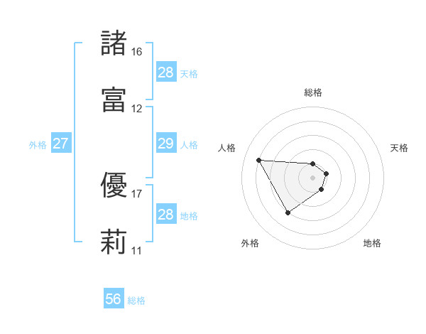 諸富 優莉さんを姓名の画数から五運を鑑定
