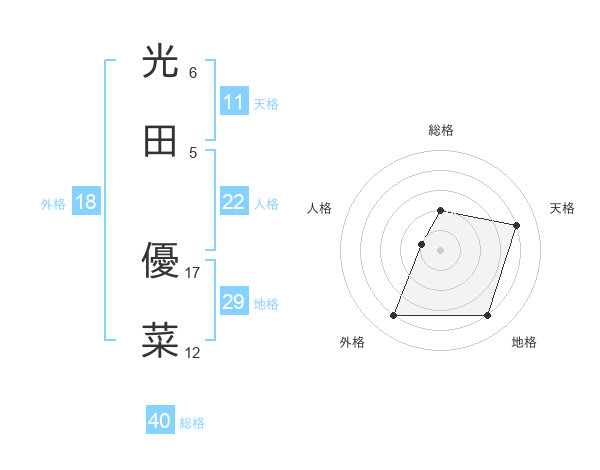 光田 優菜さんの総格は40画の2点!