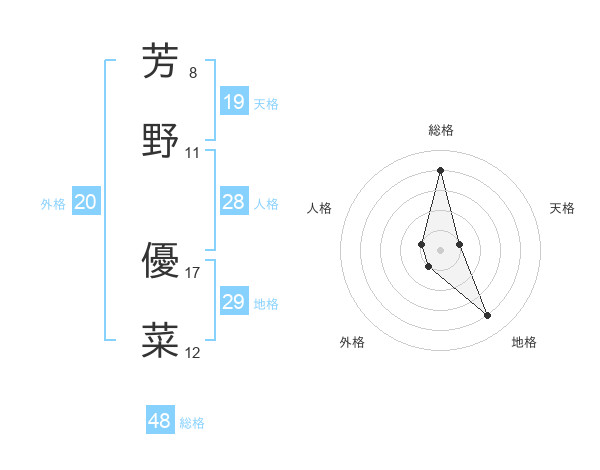 芳野 優菜さんを姓名の画数から五運を鑑定