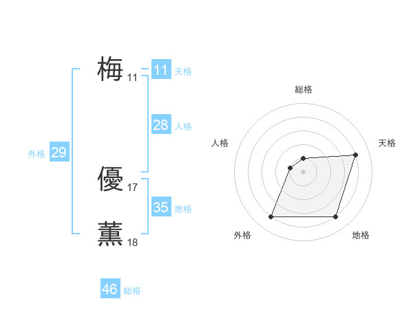 梅 優薫さんの天格は11画の4点!
