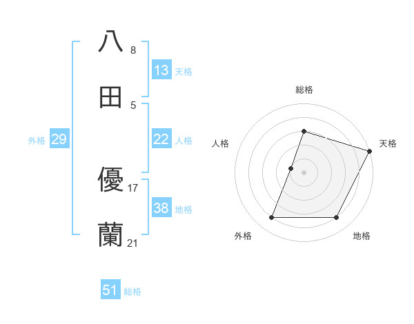 八田 優蘭さんを姓名の画数から五運を鑑定