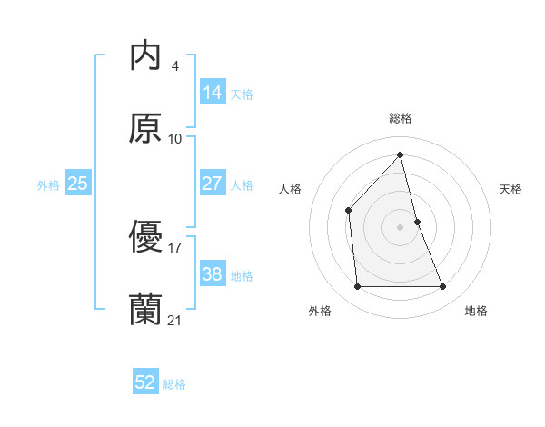 内原 優蘭さんの外格は25画の4点!