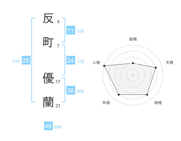 反町 優蘭さんの地格は38画の4点!