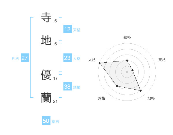 寺地 優蘭さんを姓名の画数から五運を鑑定