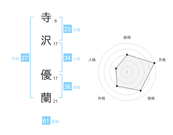 寺沢 優蘭さんを姓名の画数から五運を鑑定