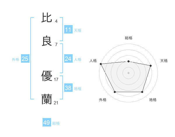 比良 優蘭さんの総格は49画の2点!