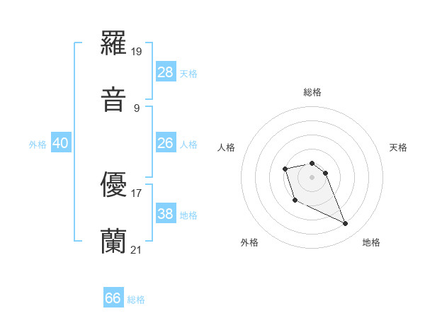 羅音 優蘭さんの総格は66画の1点!