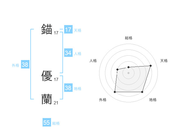錨 優蘭さんの外格は38画の4点!