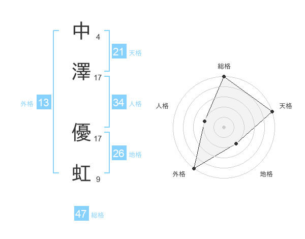 中澤 優虹さんを姓名の画数から五運を鑑定