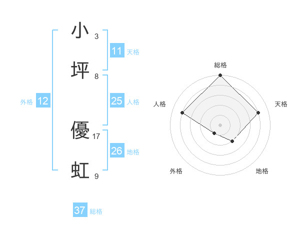 小坪 優虹さんを姓名の画数から五運を鑑定