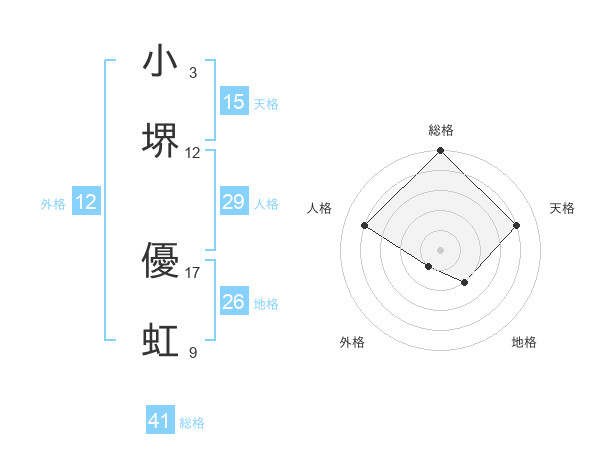 小堺 優虹さんを姓名の画数から五運を鑑定
