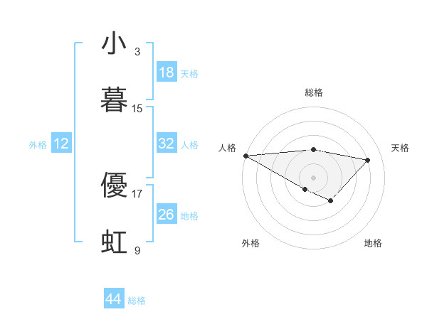小暮 優虹さんの天格は18画の4点!