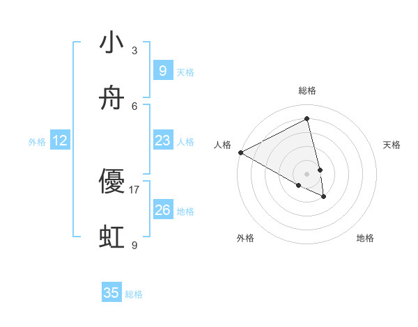 小舟 優虹さんを姓名の画数から五運を鑑定