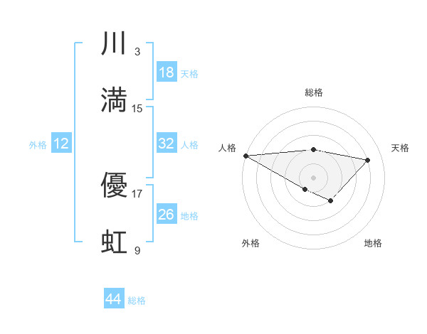 川満 優虹さんの外格は12画の1点!